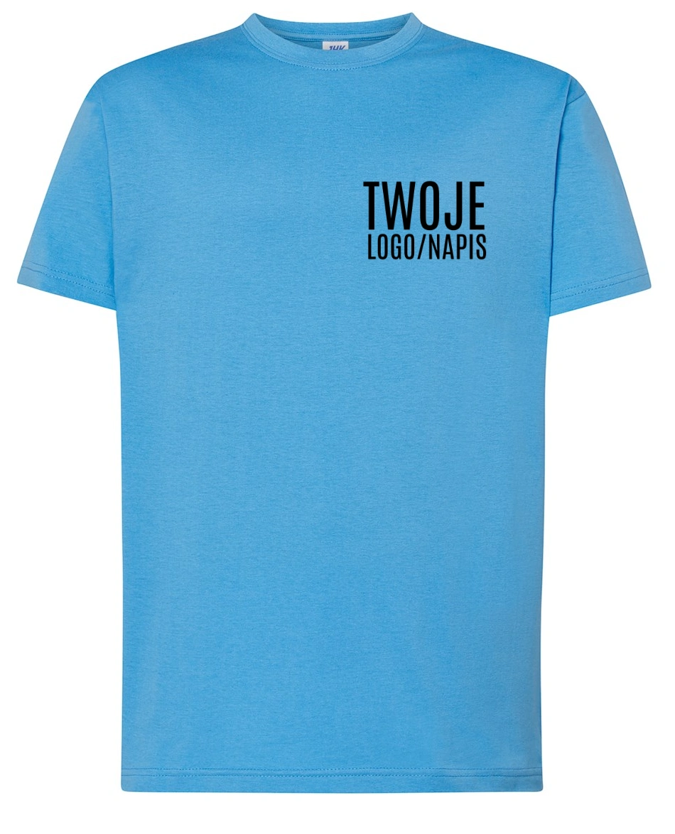 T-shirt JHK jest idealny do nadruku logo firmy, hasła reklamowego lub grafiki promocyjnej.