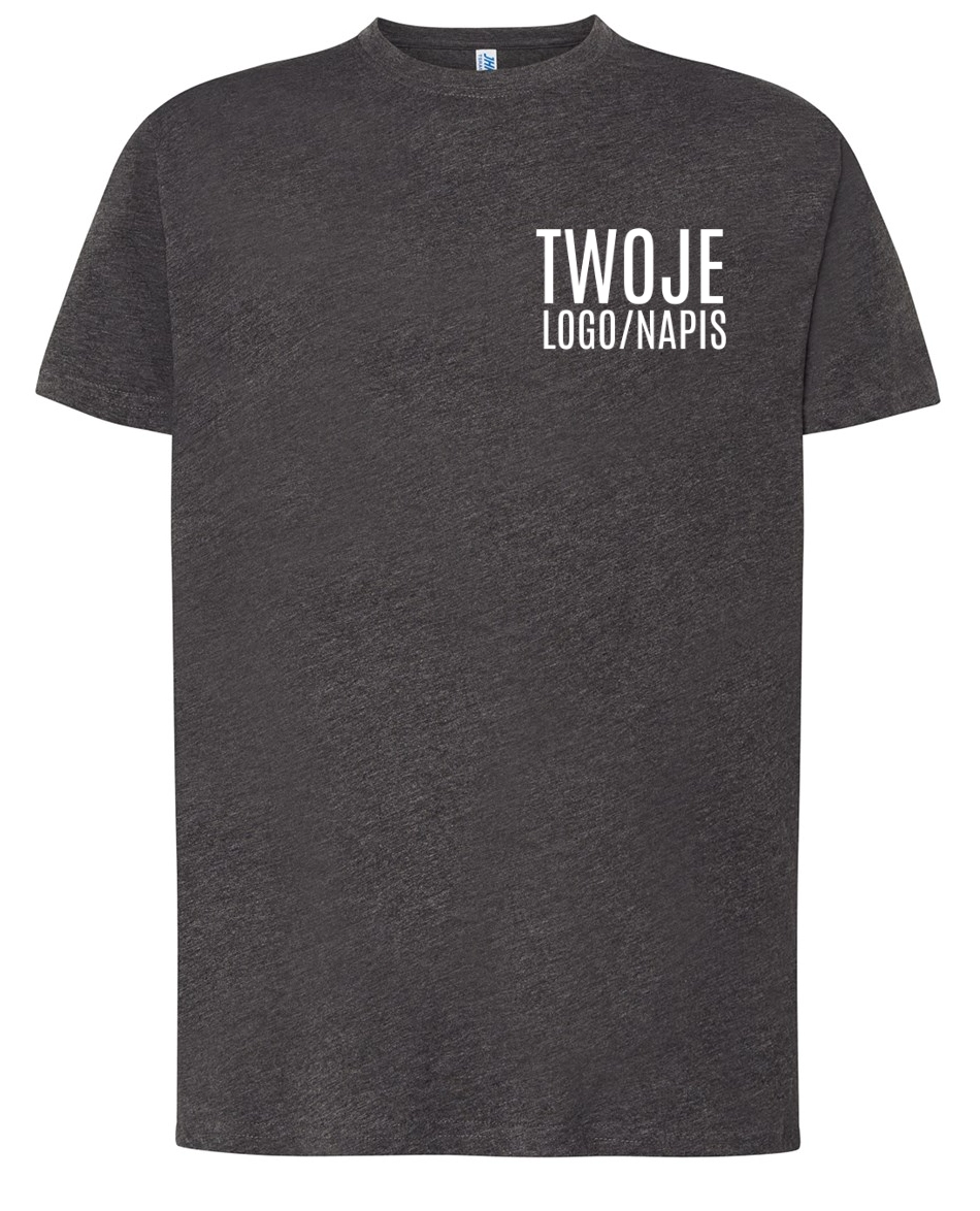 T-shirt JHK jest idealny do nadruku logo firmy, hasła reklamowego lub grafiki promocyjnej.