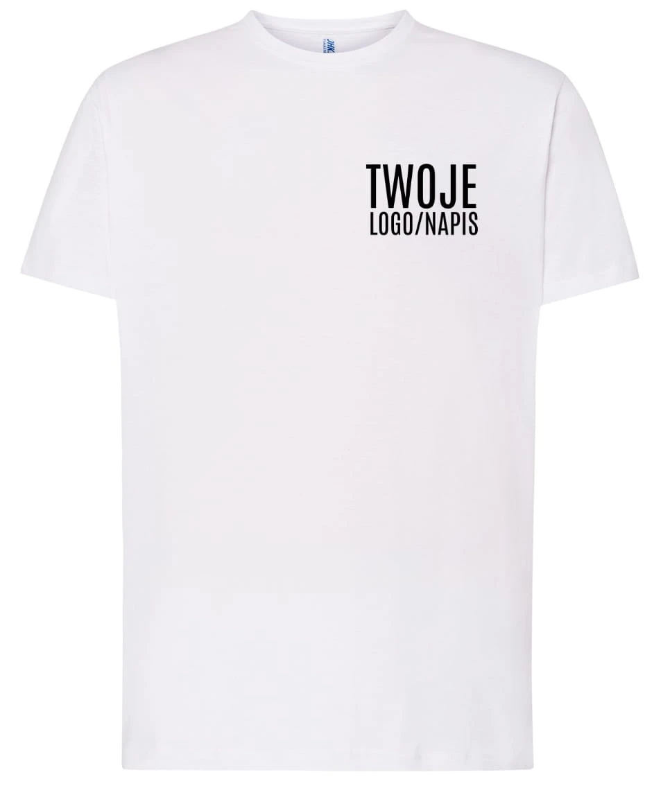 T-shirt JHK jest idealny do nadruku logo firmy, hasła reklamowego lub grafiki promocyjnej.